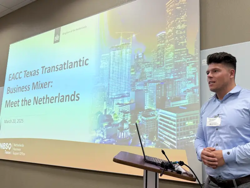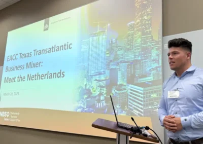 Later that day, Stef spoke at the European American Chamber of Commerce Texas event “Meet the Netherlands.” Business leaders, legal experts, and civic officials joined the conversation, showing strong interest in building Dutch–American partnerships. Many thanks to EACC Texas Director Erin McKelvey for organizing this well-attended event.