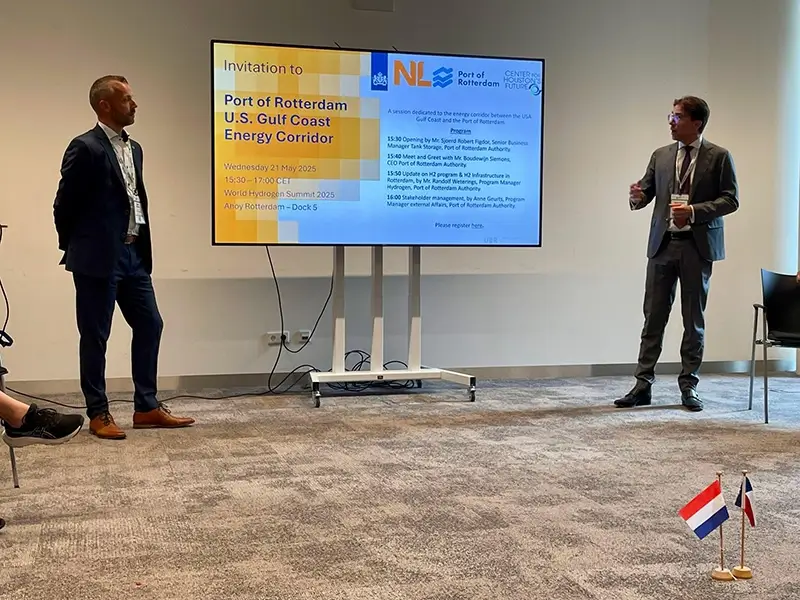 Coordinated by the Center for Houston’s Future and supported by the Netherlands Embassy in Washington, D.C. and NBSO Texas, the Texas delegation kicked off its visit with a broader hydrogen-focused program across the Netherlands. The journey began in Groningen, the heart of the Hydrogen Valley, where delegates explored regional developments, including a visit to the Eemshaven port and Green Planet, a multifuel energy station that already features green hydrogen for cars and trucks.